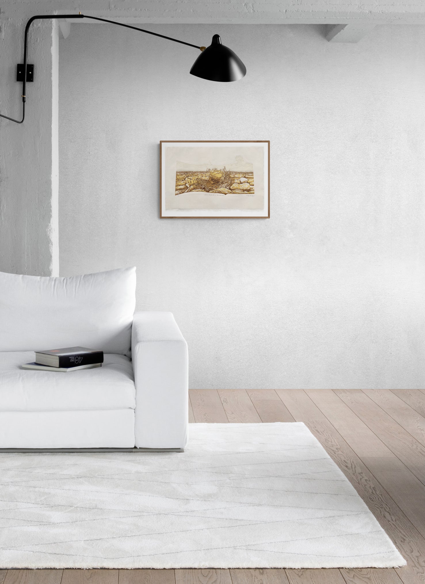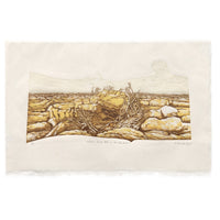 Reduction woodcut off a naturally shaped Jacaranda branch, on Japanese Kozo Natural Select 46 gsm
