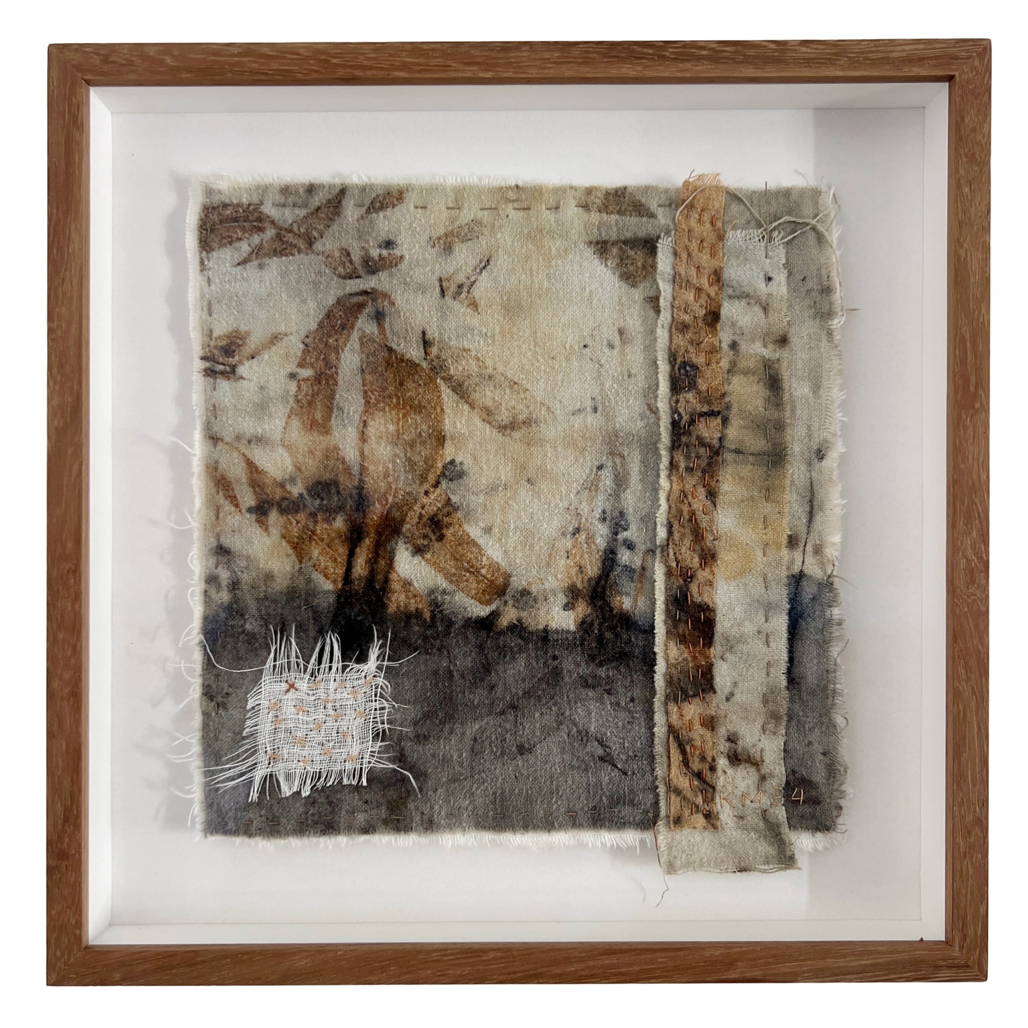 Natural mark making and stitch on hemp linen and cotton isolation cloth, with vintage thread.