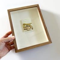 This piece is only available framed. The artwork was originally made for the Tiny Art Gallery collaboration with Open Studios Kommetjie 2023. The full collection of tiny artworks was raffled and the funds donated to the give back project, Hope Town Ocean View.