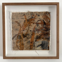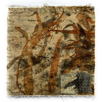Natural mark making and stitch on hemp linen and cotton isolation cloth, with vintage thread.