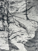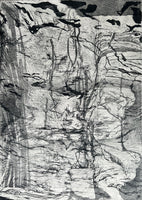 This woodblock print was printed off five residual woodblocks, from pieces that I worked on in 2022 and 2023. Full of loose movement, it nevertheless references the spaces and thoughts that went into the original composite woodblock prints, all of which were reduction woodblocks. This piece is available unframed and is a unique piece.