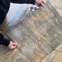 7 layer multiple block and reduction woodblock print on light weight hand made Japanese paper.